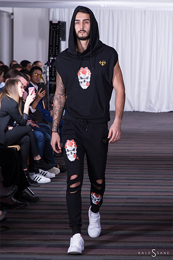 Defile de la marque de sportwear Les Diamants de L'Orient, lors de la Balessane Fashion week Paris 2018 au Palais de l'Unesco.